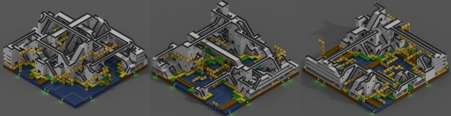 Of course, We can extend to the three-dimensional situation. In general, the initial state of each level is a voxel composed of all possible modules. As the algorithm continues to advance according to the constraints, the possibilities in the grid become less and less, the grid becomes more and more sparse, the modules in each slot are gradually determined, and finally, a usable level is generated.